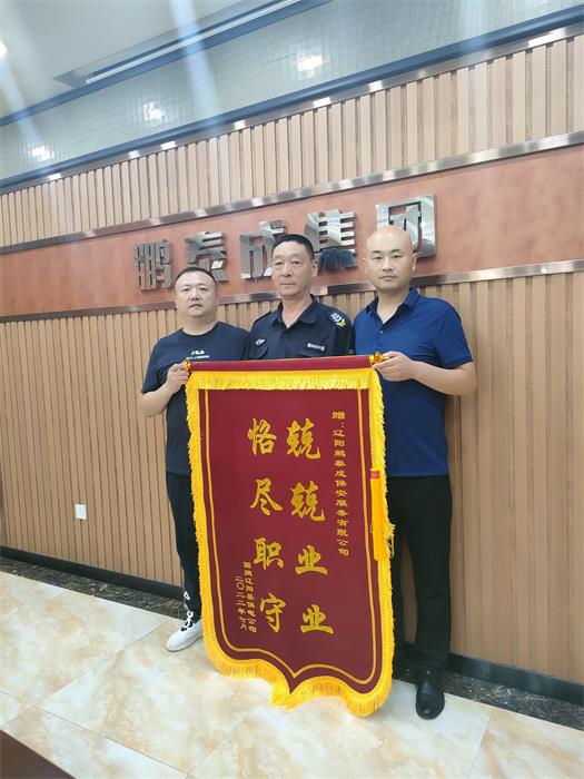 2022年7月21日上午,鵬泰成集團(tuán)公司收到駐勤單位國(guó)網(wǎng)遼陽縣供電分公司王主任和周主任送來的一面“恪盡職守,兢兢業(yè)業(yè)”的錦旗。對(duì)派駐在國(guó)網(wǎng)遼陽縣供電分公司的全體保安員認(rèn)真工作的態(tài)度給予了高度認(rèn)可。集團(tuán)公司的總經(jīng)理吳濤和人防部經(jīng)理袁乃良熱情接待,對(duì)于國(guó)網(wǎng)遼陽縣供電分公司單位領(lǐng)導(dǎo)的高度認(rèn)可,表示感謝。錦旗不僅是榮譽(yù),更是一種新的使命,我們一定戒驕戒躁,以更飽滿的精神面貌服務(wù)好駐勤單位,保單位的一方平安!